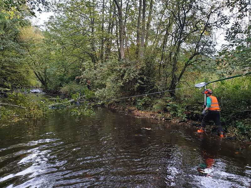 People walking by the river at Damems recently may have noticed some riverside trees have been felled and left in the river. What’s that all about!? It’s part of the River Worth Improvement Project (RWIP) and is intended to improve the in-river ecology. Here Sam Riley-Gunn of the Aire Rivers Trust and project leader for the RWIP explains what it’s all about. Read on…. From the start of the industrial revolution, we have changed the shape of the River Worth from its natural irregular path to a high sided, straight, fast flowing channel. This has had an impact on the ecology of the river, making it less attractive to wildlife. One of the aims of the RWIP was to enhance the river environment for wildlife. At the Damems Nature Reserves, Aire Rivers Trust and the Wild Trout Trust have been introducing tree kickers to the River Worth. These are trees that have been felled into the river channel and securely anchored to the riverbank with steel cables. The aim is to mimic the natural presence of large woody matter that historically would have naturally fallen into the river. Though simple in design, these structures bring profound benefits to the river, its wildlife, and the surrounding community. They will restore natural river processes by breaking up the monotony of the artificial fast, straight, flows. Hover over image to read caption. As water moves around and through the submerged branches, it slows in some areas and accelerates in others, creating pools, riffles, and eddies that reshape the riverbed. Sediment begins to settle in calmer zones, while gravel is scoured clean in faster currents. This is important on the Worth as its fast straightened flow limits the build-up of clean gravel beds that are vital spawning grounds for fish such at brown trout.